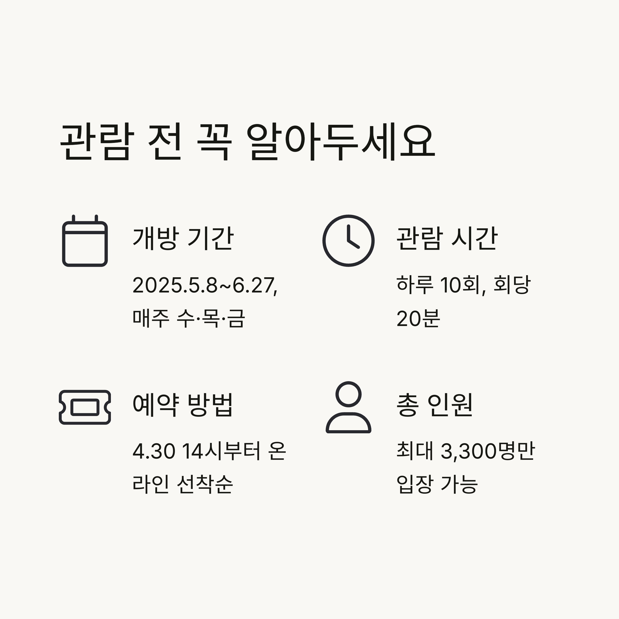 • 개방 기간: 2025년 5월 8일 ~ 6월 27일