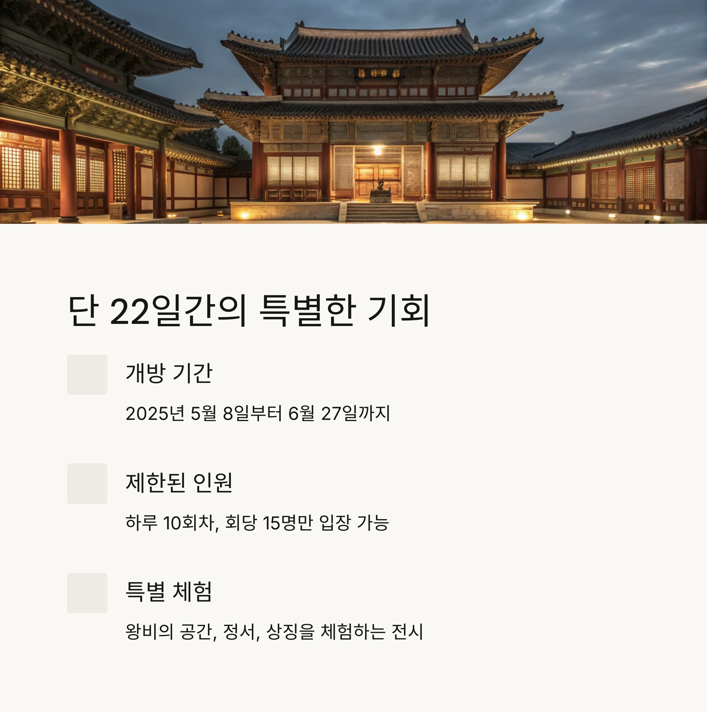 교태전 특별 개방 콘텐츠 구성 요약