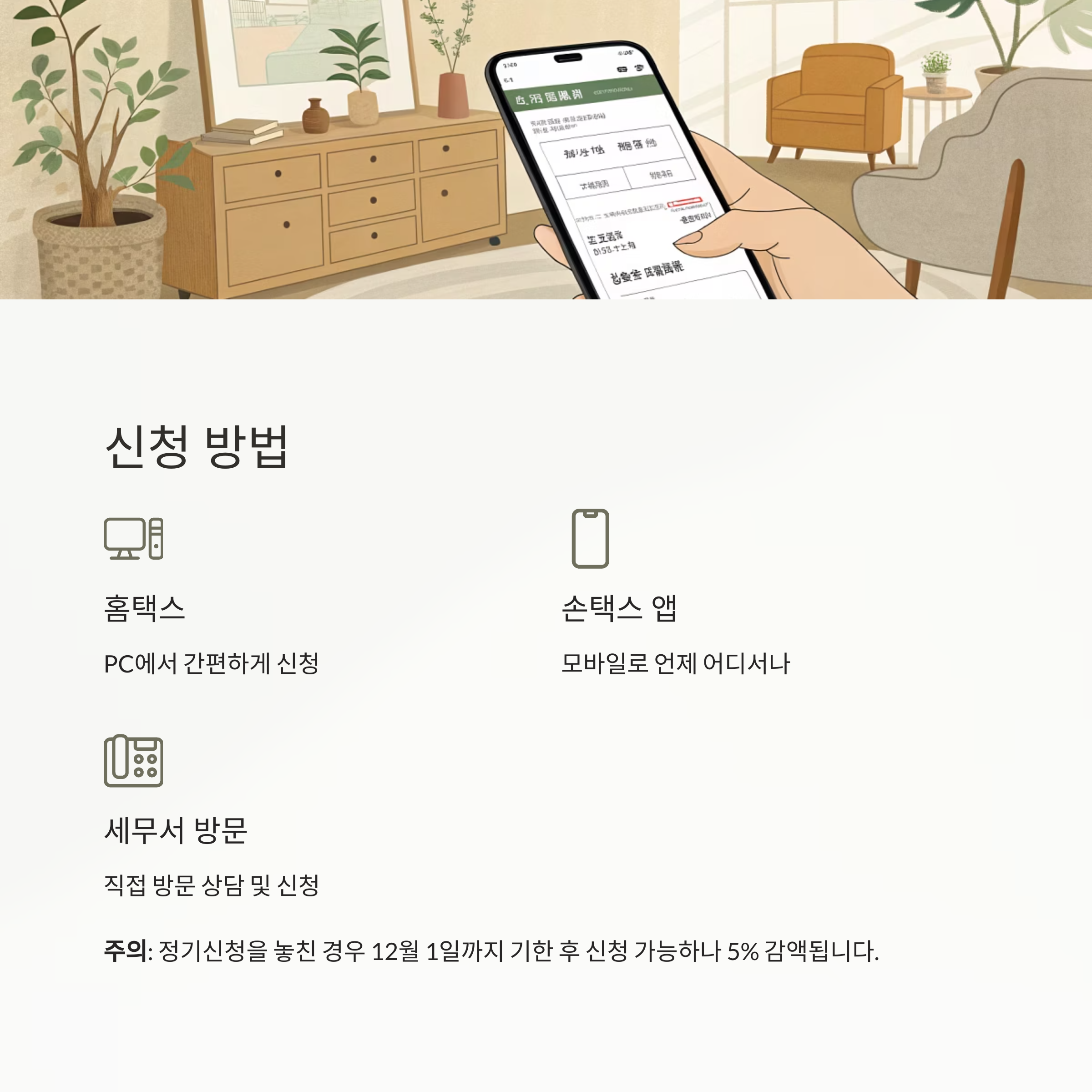 필수: 매년 세부 조건이 변동될 수 있으므로, 국세청 공식 사이트와 안내문을 반드시 확인해야 합니다.