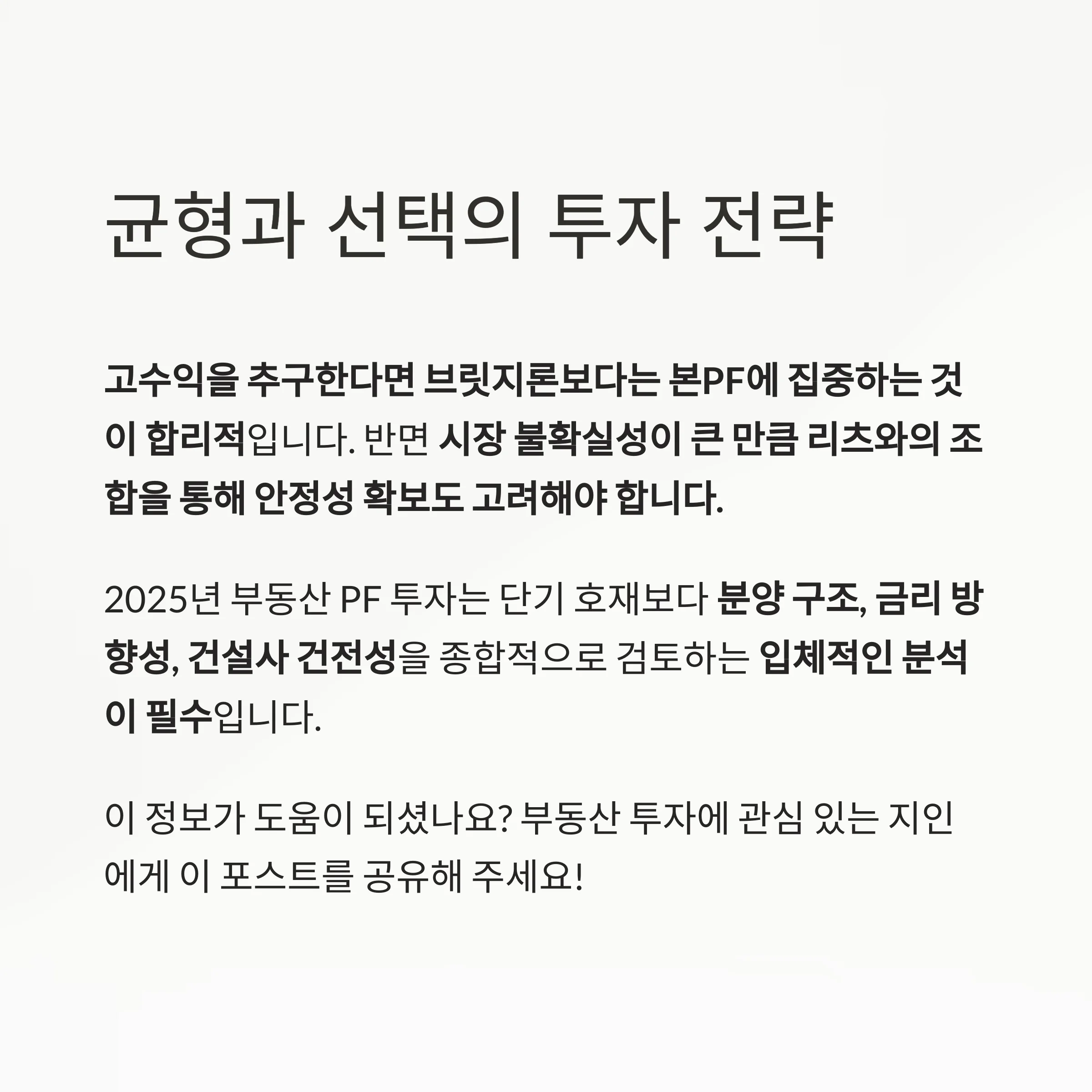 고수익을 추구한다면 브릿지론보다는 본PF에 집중하는 것이 합리적입니다.