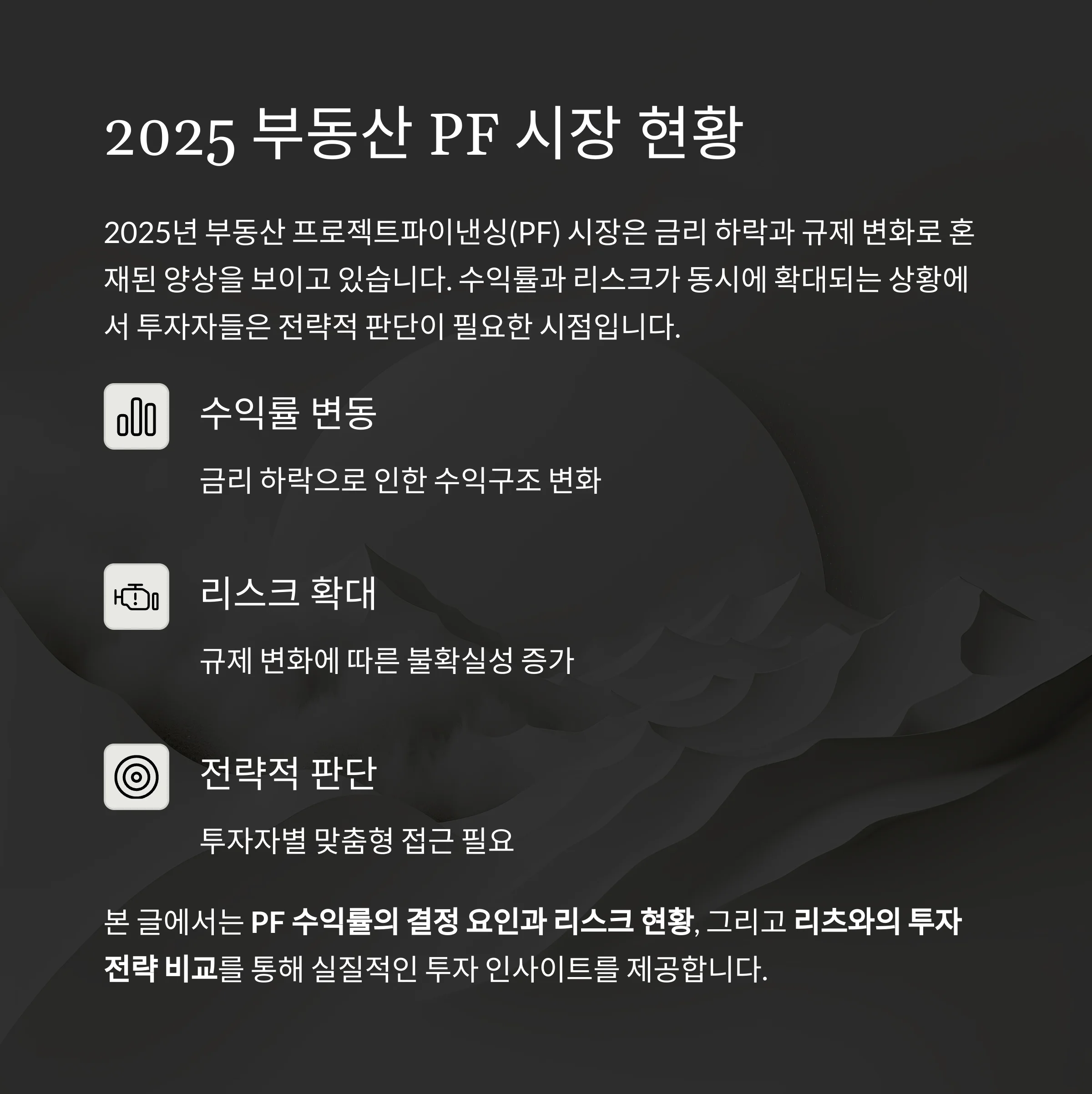 본 글에서는 PF 수익률의 결정 요인과 리스크 현황, 그리고 리츠와의 투자 전략 비교를 통해