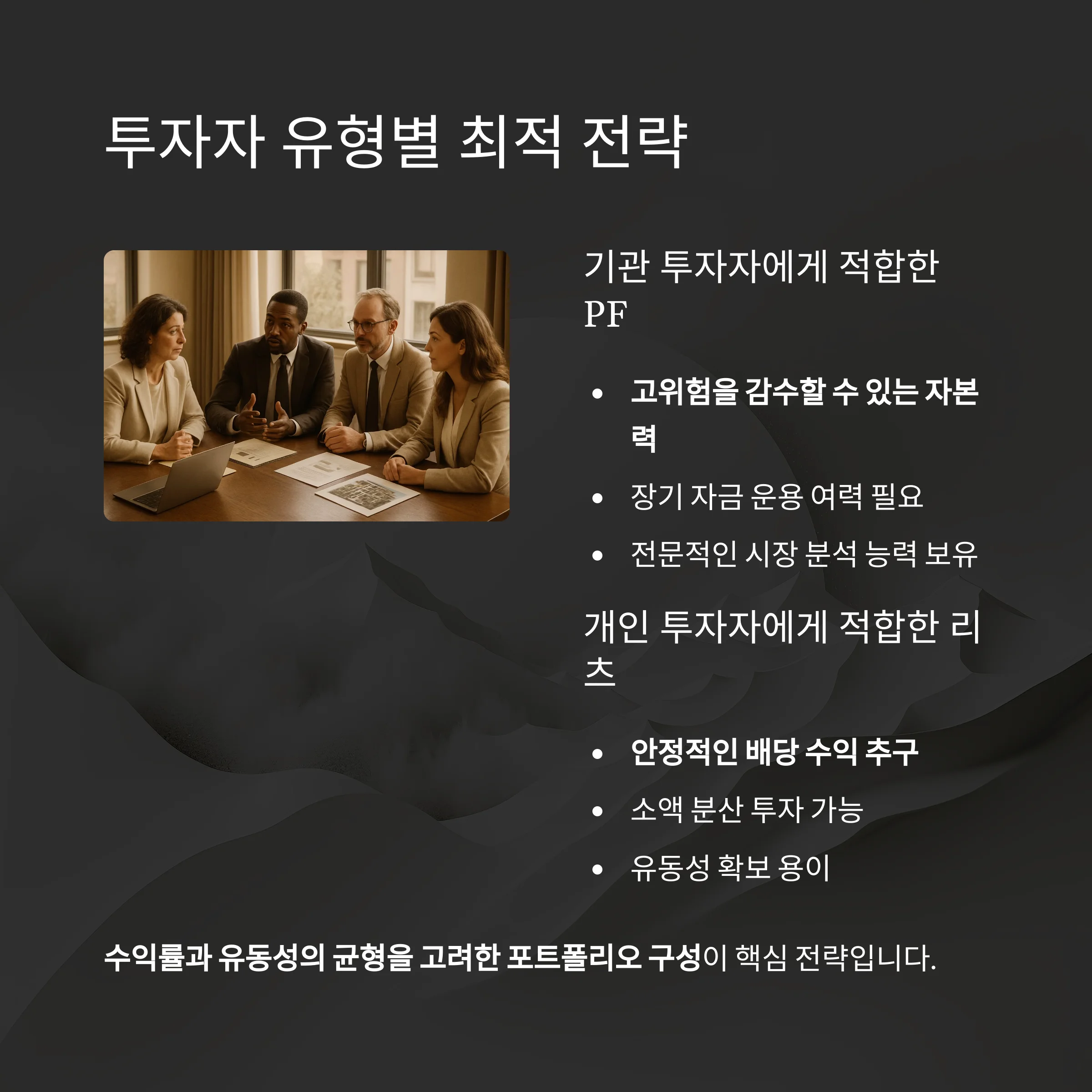 반면 시장 불확실성이 큰 만큼 리츠와의 조합을 통해 안정성 확보도 고려해야 합니다.