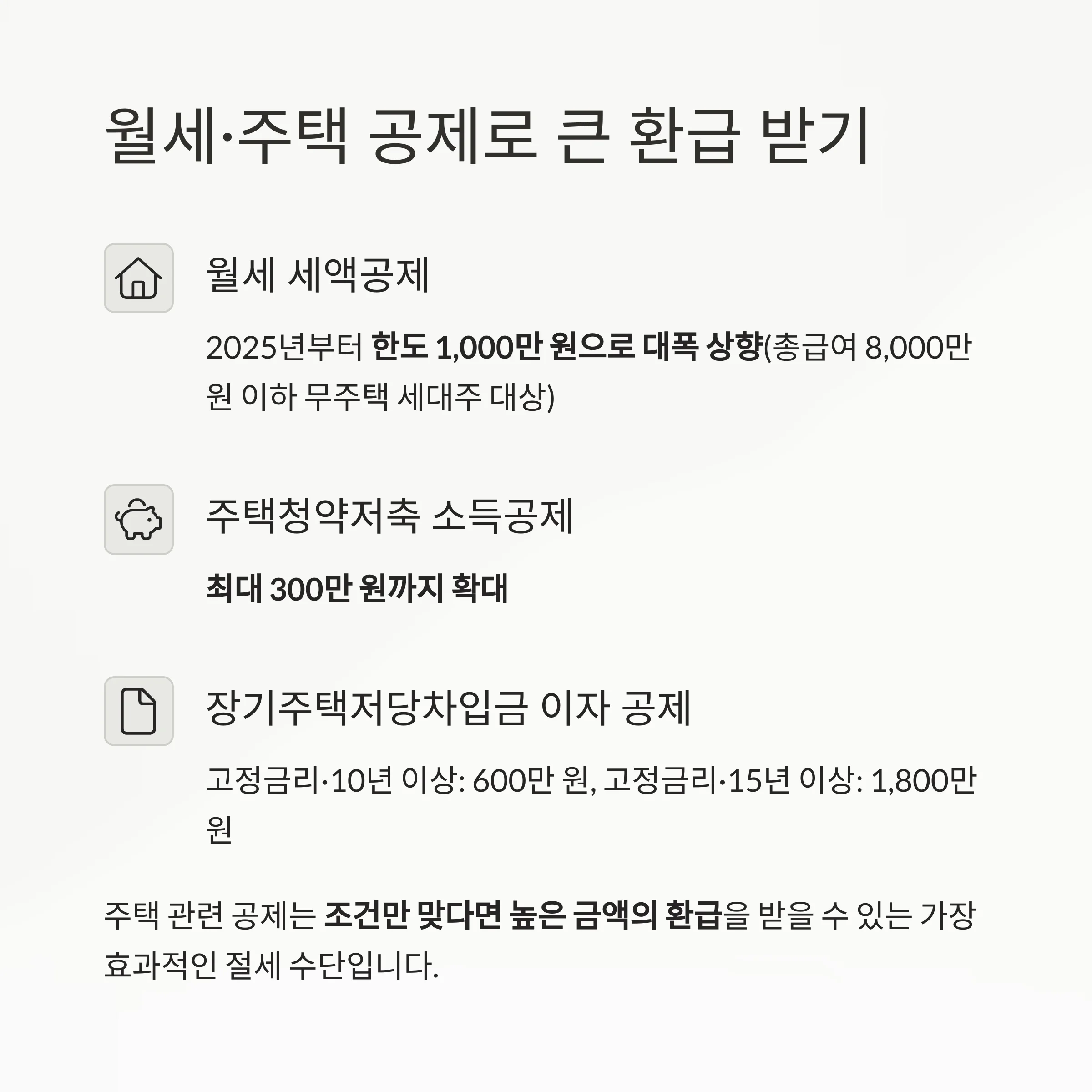 | 주택이자 | 최대 1,800만 원 | 고정금리·장기 조건 충족 필수 |