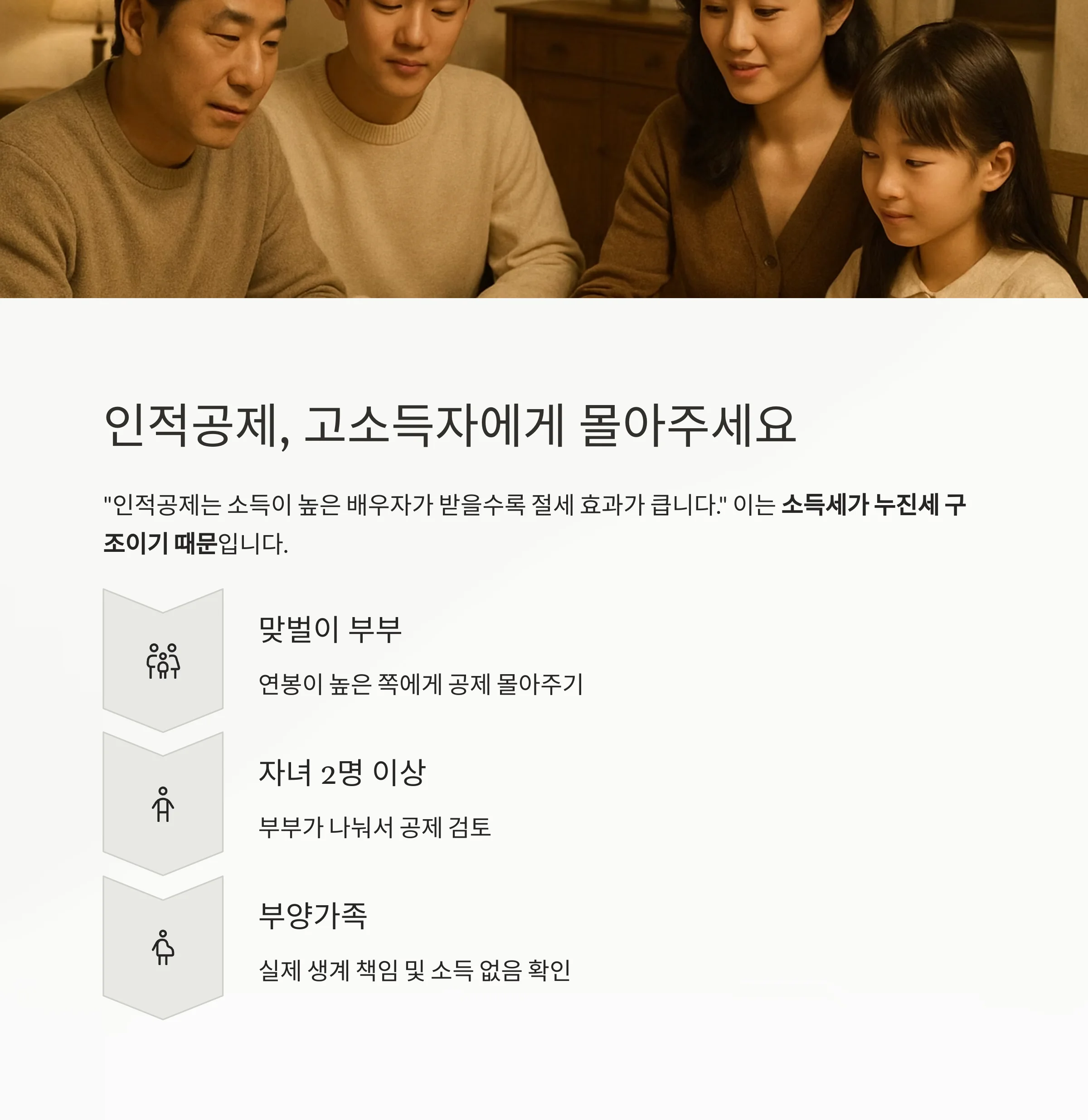 "인적공제는 소득이 높은 배우자가 받을수록 절세 효과가 큽니다."