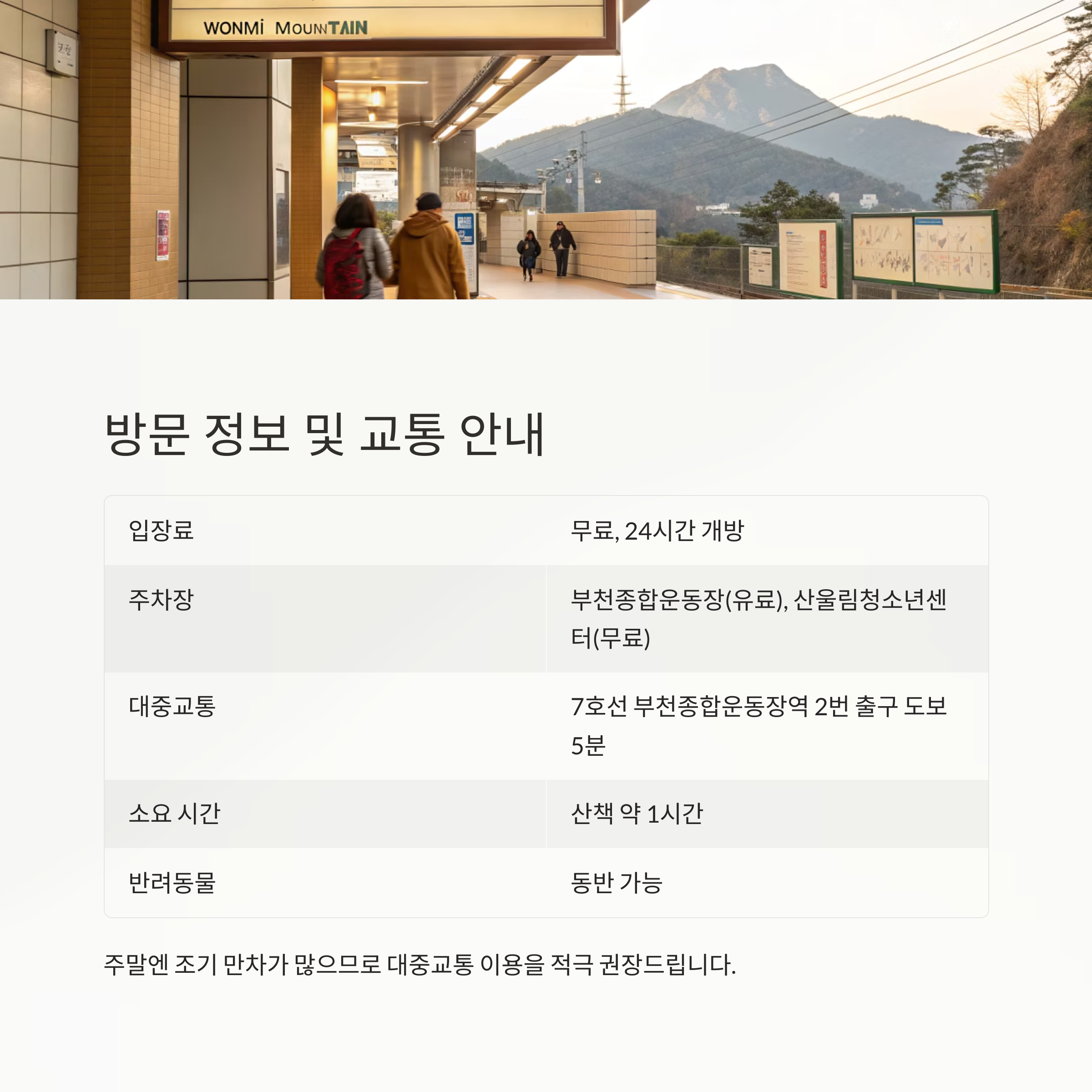 | 대중교통 접근 | 7호선 부천종합운동장역 2번 출구 도보 5분 |