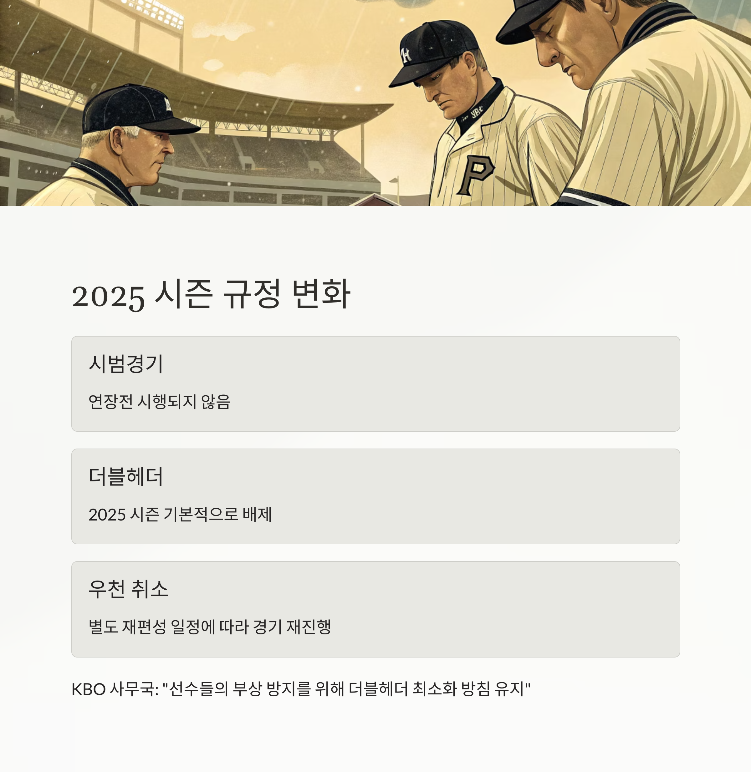 - 더블헤더(하루 2경기)는 2025 시즌 기본적으로 배제