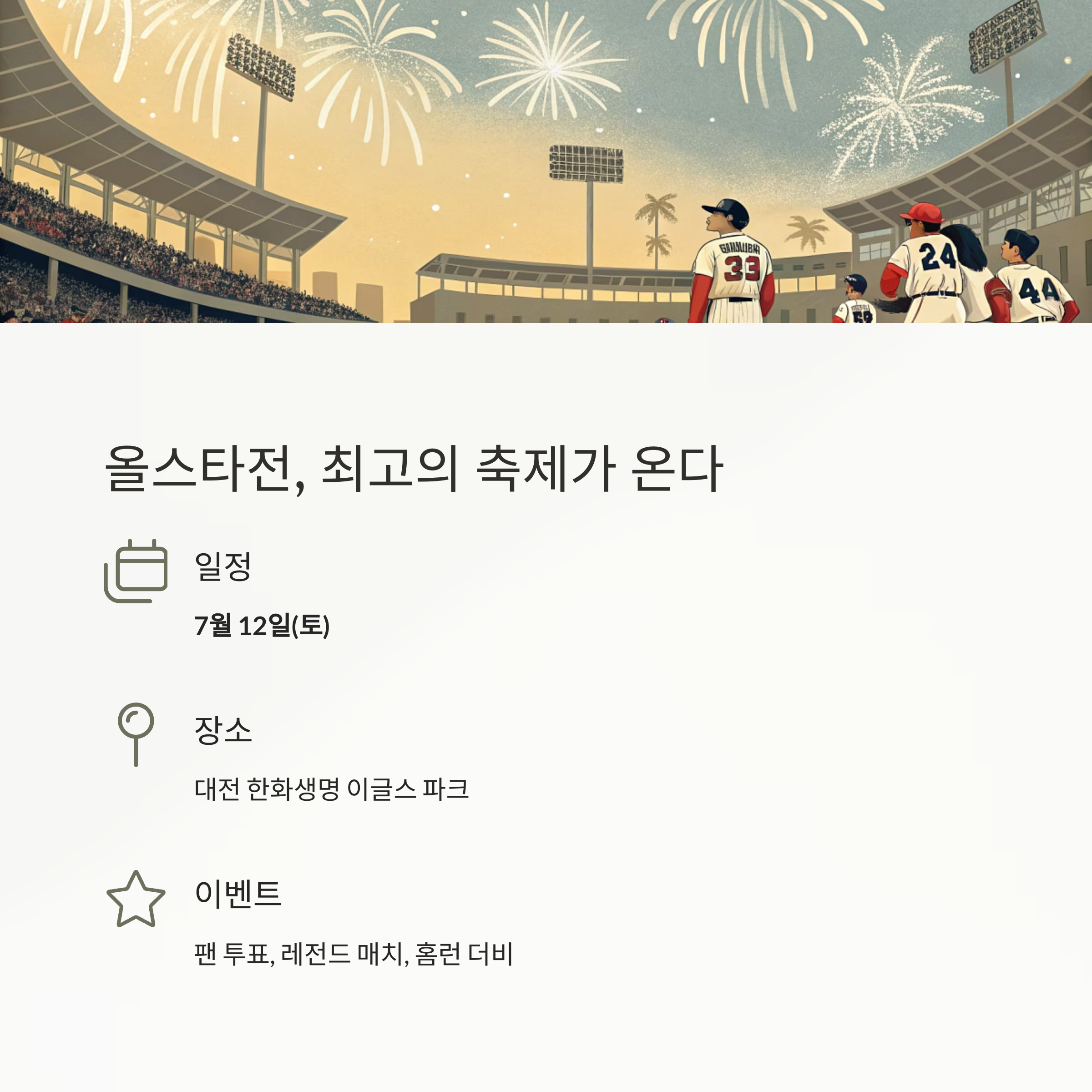 등 다양한 부대행사로 야구팬들에게 최고의 축제를 선사할 예정입니다.