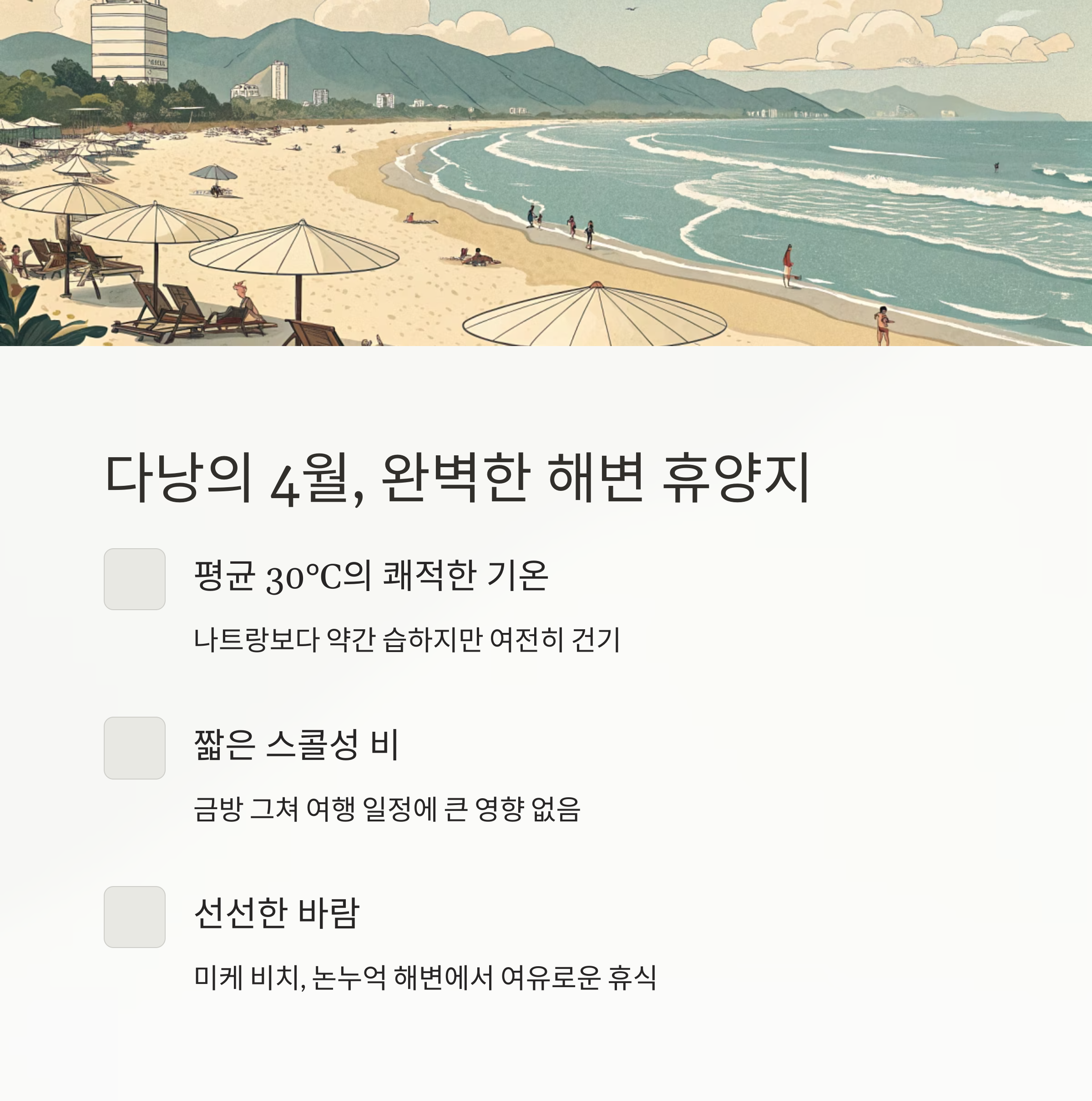 다낭: 4월 평균 30도, 해변 휴양에 최적의 시즌